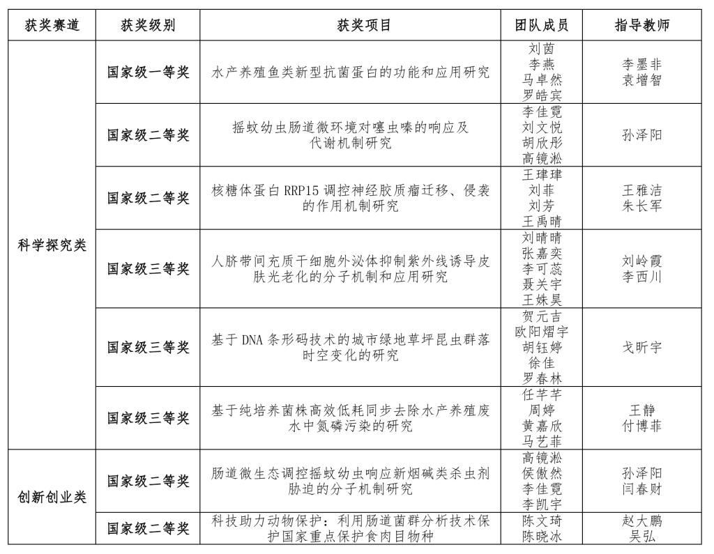 第十届全国大学生生命科学竞赛国家级获奖名单