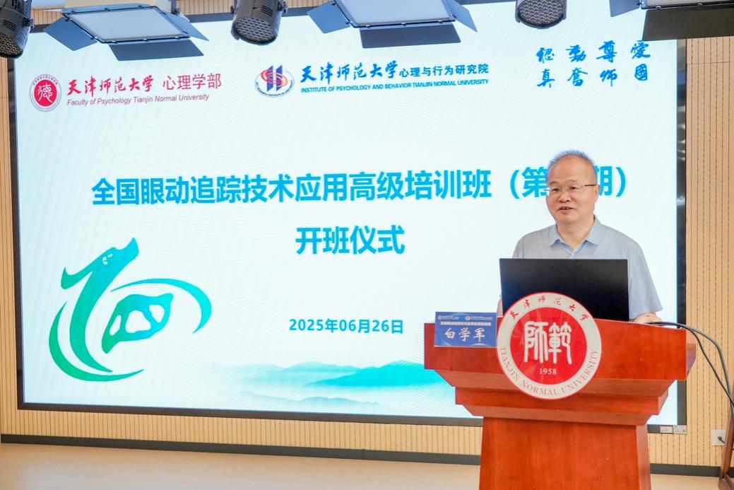 白学军在致辞中谈到,在建成教育强国和科技强国的进程中,高校和科研工作者肩负着重大使命。眼动技术作为心理学研究中的重要手段,在国防安全、教育评估、视觉信息加工等多个前沿领域展现出更加广泛的应用潜力,视觉行为的研究要更好地服务于国家重大战略需求。他勉励学员要严谨治学、注重实践,以高标准完成学习任务,并欢迎大家积极参与即将举办的第十届中国国际眼动大会,共同推进我国眼动研究的高质量发展。