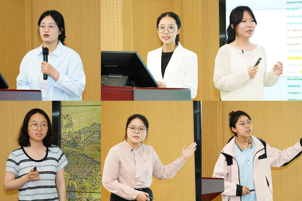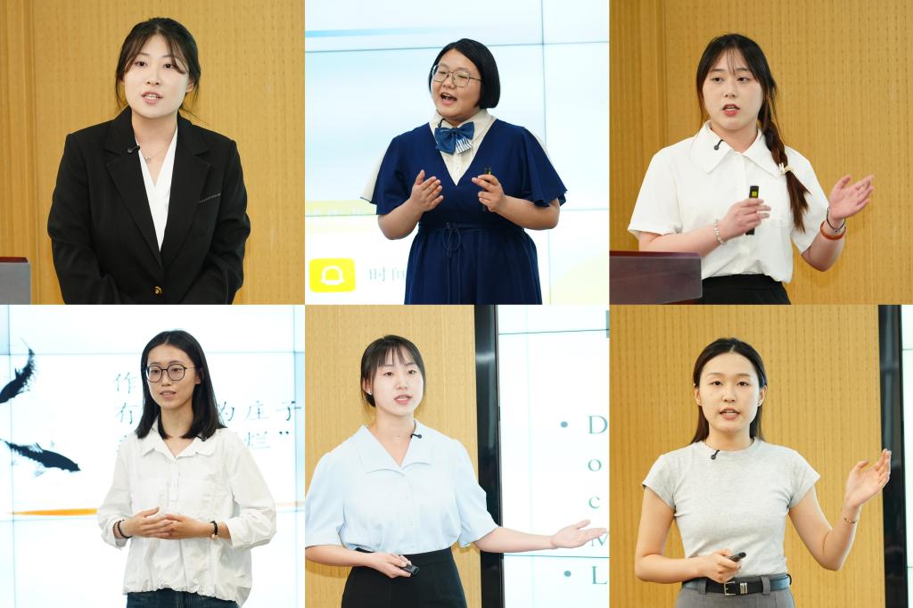比赛现场,12位参赛选手通过说课展示、实践汇报、现场答辩三个环节展示实习成果,围绕教材分析、学情分析、教学目标与教学设计等方面展示教学过程,充分展现了扎实的专业知识、创新的教学理念和出色的实践能力。王耀华以实践案例为切入点,探索差异化学习者的同频成长路径;张佳琪通过角色扮演与支架表格的童趣设计,实现语感培养与思政元素的有机融合;马静静通过融入传统文化与前沿科技,展现科学教学中实验创新与素养培养的实践能力;张惠雲运用地图动画与文明分析框架,构建跨学科教学新范式。