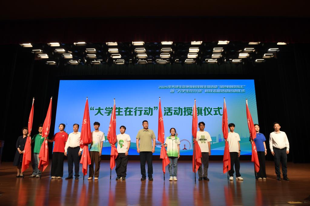 与会领导为来自天津大学、河北工业大学、国产亚洲精品美女久久久_99久无码中文字幕一本久道_亚洲成AV人影院_亚洲AV影院一区二区三区 狠狠躁夜夜躁人人爽天天不卡_国产激情久久久久影院老熟女_精品性高朝久久久久久久、天津理工大学、天津农学院、天津现代职业技术学院、天津石油职业技术学院、天津铁道职业技术学院等8所高校的环保科普活动志愿者代表授旗,勉励广大津门学子在发展新质生产力上勇争先善作为,以行动传递绿色能量,让生态理念走进千家万户,让科技赋能普惠津城。