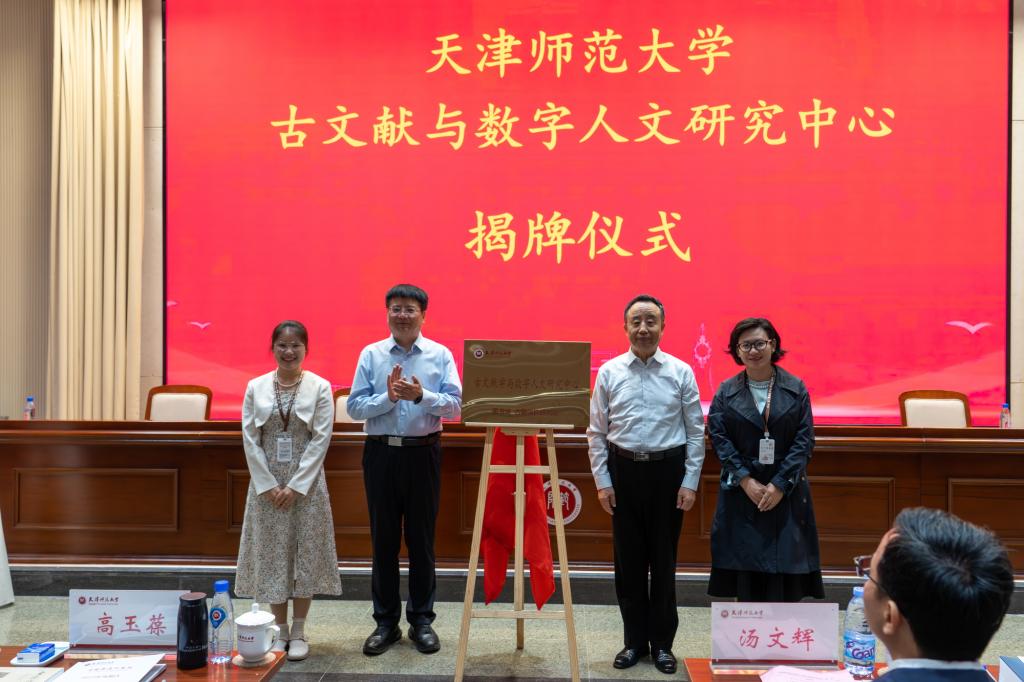 仪式上,天津学研究中心、古文献与数字人文研究中心、教育教学实践基地揭牌,并向首批兼职研究员颁发聘书。王振良教授、周余姣教授分别作中心成立报告。