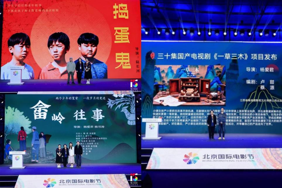 在作品发布环节,杨爱君教授携一众主创发布三部新作:由陆长河教授执导的《捣蛋鬼》以轻松幽默的气氛,讲述了支教实习教师与顽皮少年之间的真挚友谊,该片已完成后期制作,将于央视六套播出;抗战题材儿童电影《畲岭往事》由杨爱君教授执导,讲述了畲族少女钟莲、蓝聆帮助红军伤员、智斗匪帮的革命传奇,该片于2020年完成摄制,即将登陆国内院线;三十集电视剧《一草三木》同样由杨爱君教授执导,其研究生卢甜、蔡源共同编剧,作品通过农村女孩严小草的创业史诗,展现了中国家具产业崛起的历程,该项目已通过国家广电总局立项审查,进入拍摄筹备阶段。