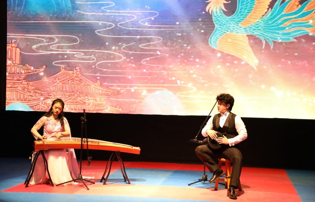 展演中,我校音影学子表演了古筝与手鼓演奏《春之舞》,中国汉唐古典舞《十二花神》和歌曲《相亲相爱》《友谊地久天长》等节目。精心编排的节目充分展示了中华优秀传统文化的独特魅力,热情奔放的表演体现出中国当代大学生的青春活力和精神风貌。