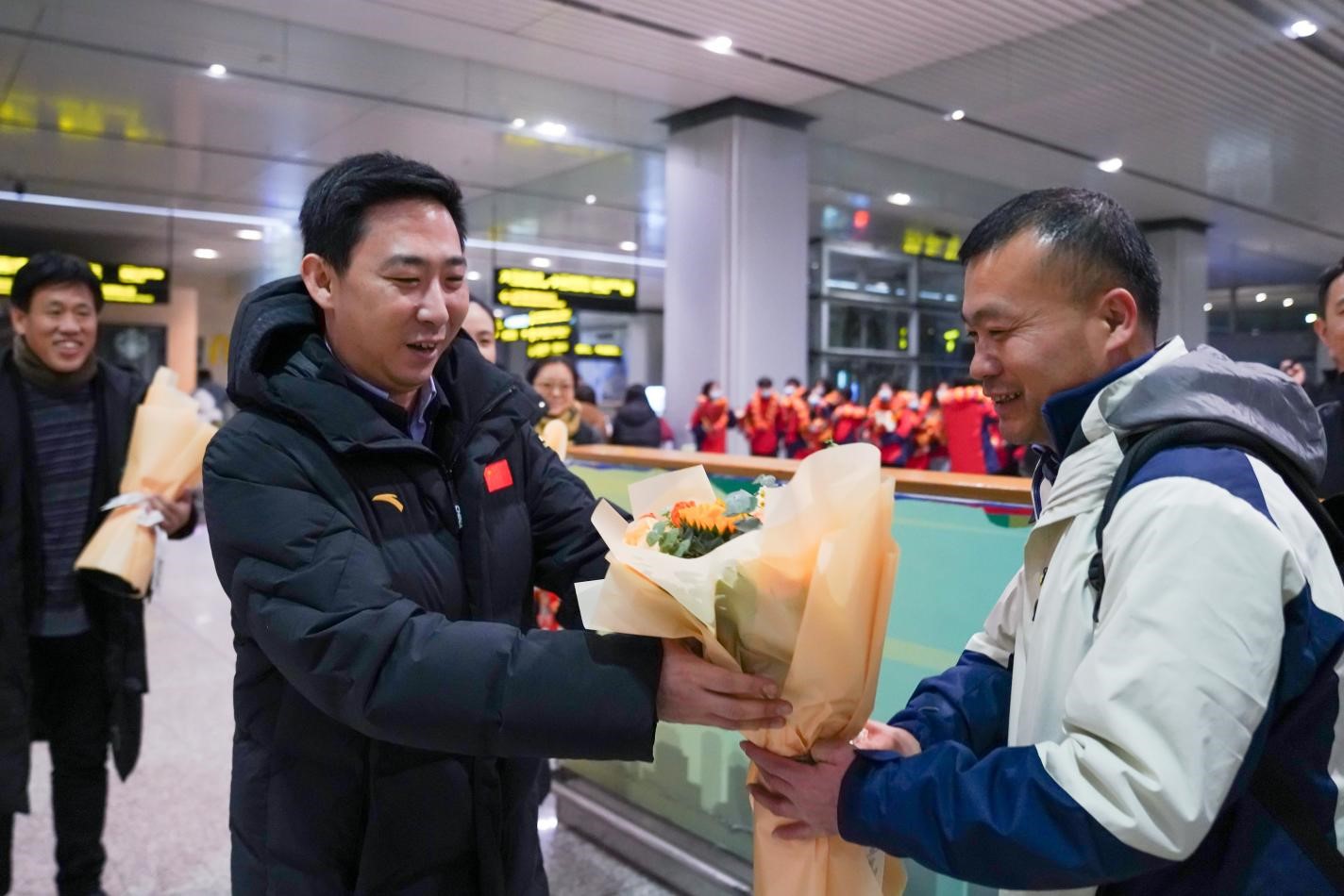 党委学工部消息(通讯员 杨晨)2023年12月31日凌晨,我校2023年秋季学期援疆实习支教团60余名师生在圆满完成为期三个半月的实习支教任务后,从新疆和田地区载誉而归。校党委常委、副校长陈玳玮前往机场迎接实习支教学生,学校党委学生工作部、继续教育学院负责同志及相关工作人员随同迎接。