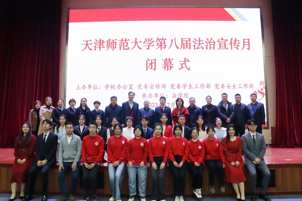 闭幕式上,与会领导公布了我校第六届学生“学宪法 讲宪法”主题演讲比赛获奖名单和优秀组织单位,并为获奖者颁发了荣誉证书和纪念奖品。外国语学院许若晴、政治与行政学院张锐超作为优秀选手代表进行精彩展示。大家以视频的形式回顾了法治宣传月期间开展的丰富多彩的活动,观看了我校与西青区人民检察院合作拍摄的防电信诈骗短视频《送你一双火眼金睛》、“防范非法校园贷”主题原创短剧《金色余晖》以及由校园监控录像改编的交通安全警示教育片。