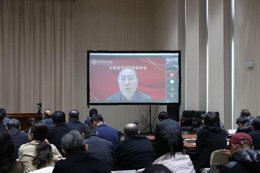 市教委高教处处长徐震,我校全体校领导,各学部(院)、职能部处主要负责人,各学部(院)分管本科教学工作副部长(副院长),评估专家组联络员参加会议。