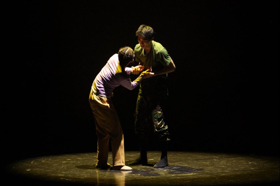 舞台上,狂风暴雨袭来,王继才夫妻俩正在一盆一盆把倒灌的海水从屋里倒出去,恶劣的生活环境,坚毅爱国情怀铸就了英雄的夫妇。舞蹈《夫妻哨》以新时代奋斗者、“时代楷模”王继才为人物原型,展现他与妻子王仕花32年如一日坚守开山岛、无怨无悔献身海防事业的感人故事,讴歌他们的爱国奉献精神。