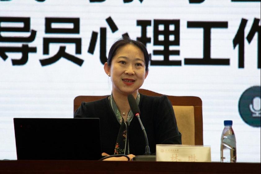 林琳以“关爱自我,守护学生——辅导员心理工作实务”为题,从当前心理健康工作的重要性出发,围绕家校社协同心理育人、心理危机的预防与应对、借鉴咨询技术开展谈心谈话、辅导员积极心态养成等方面,分享了自己的工作思路和感悟。