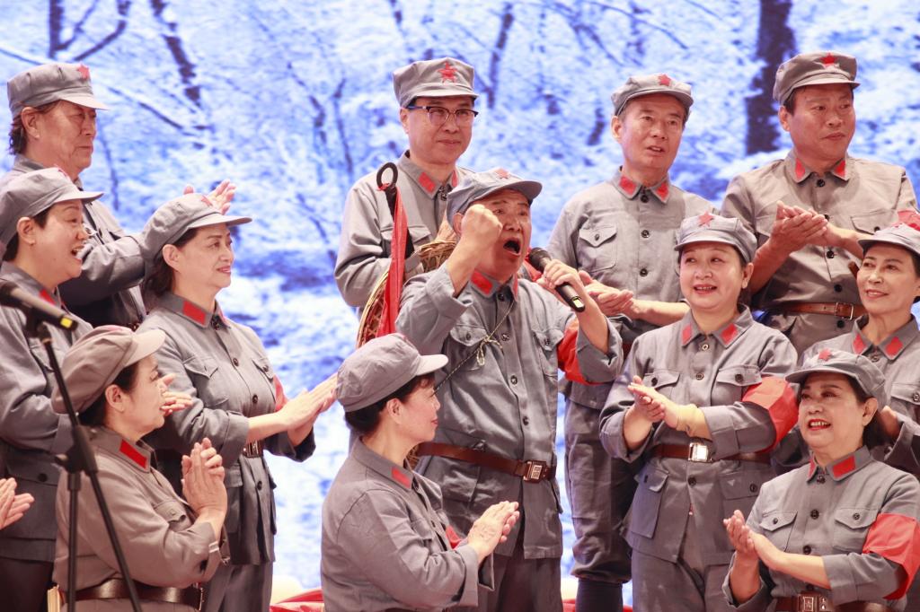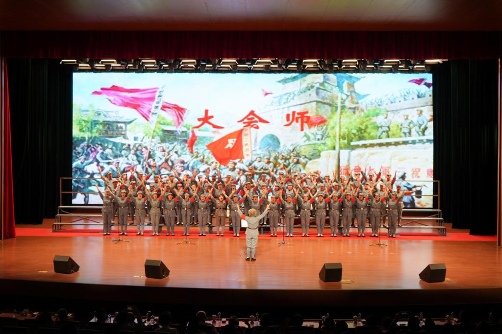值得一提的是,天津师大此次读书活动邀请到了周恩来总理之侄周秉和、朱德委员长外孙刘武、任弼时同志之孙任继宁,张云逸大将之子张光东和儿媳曹莉冬等几位老一辈革命家后代来到现场。活动中,合唱团首先带来了《遵义会议放光辉》《飞跃大渡河》《过雪山草地》《到吴起镇》《大会师》等红色主题的长征组歌,现场师生体验了一场红色旋律的视听盛宴。