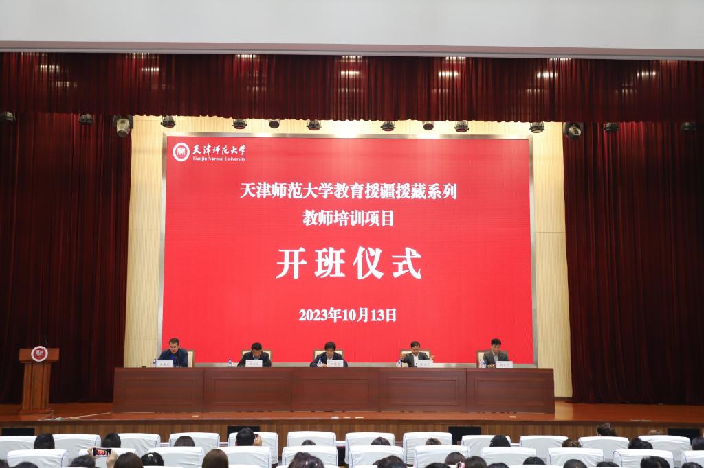 对口帮扶管理服务中心(通讯员 顾颉刚)10月13日上午,我校2023年度教育援疆援藏师资建设项目系列培训班开班仪式在会议中心大报告厅举行,校党委常委、副校长佟德志出席并讲话。天津市教委协作支援与语言文字处副处长周志勇出席会议,在我校参训的92位来自新疆和田地区东三县及西藏昌都市的幼儿园园长、中小学骨干教师和管理干部,我校教育学部授课教师代表、天津市静海区一线教师代表以及对口帮扶管理服务中心全体工作人员参加会议。会议由对口帮扶管理服务中心主任宋春民主持。