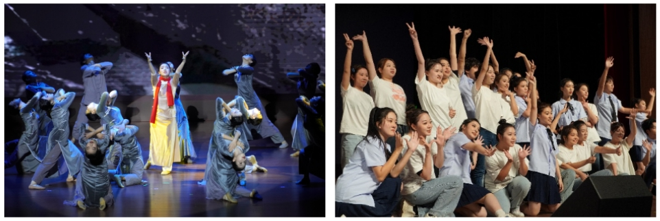 第二篇章为精彩的文艺演出,既有屡获佳绩的原创舞蹈,又有校友忆二十载芳华的深情朗诵;既有校园十佳歌手一等奖获得者的精彩演绎,还有学生乐团挥洒青春自信的生动现场;既有美术与设计学院服装表演的倾情献礼,更有学院教师家属的温馨亲子走秀和《灯火里的中国》全场动情合唱,节目充分体现了经济学院立足“三全育人”,坚持“五育并举”,重视培养学生综合素质,展现了经院师生多才多艺、朝气蓬勃、凝心聚力、追逐梦想的精神风貌,将庆祝大会引向高潮。