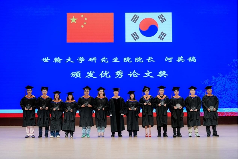 本站讯(通讯员 郝晴 刘修缘)8月16日,中韩合作办学韩国世翰大学2025届硕士研究生学位授予暨2025级新生开学典礼在我校隆重举行。我校党委副书记、校长巩金龙、韩国世翰大学校长崔美顺出席并致辞。我校党委常委、副校长白学军,世翰大学研究生院院长河英镐、国际交流院院长李银嬉等9人出席典礼。仪式由中外合作办学项目管理委员会主任、部校共建国际中文教育发展研究院院长钟英华主持。我校研究生院、国际教育交流学院、教育学部、管理学院负责人,管理教师和任教教师,2025届毕业生、2025级新生700人参加。