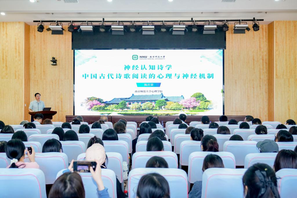 南京师范大学教务处处长陈庆荣教授作题为“神经认知诗学——中国古代诗歌阅读的心理与神经机制”的报告。他分享了关于中国心理学自主知识体系建设的思考,提出了“回归构建背景”“回归基本概念”“回归理论特质”三个回归原则,介绍了其带领的团队通过大语言模型与神经科学技术,揭示中国人欣赏古代诗歌时的独特大脑机制,为传统文化与心理学的融合与应用开辟新路径。