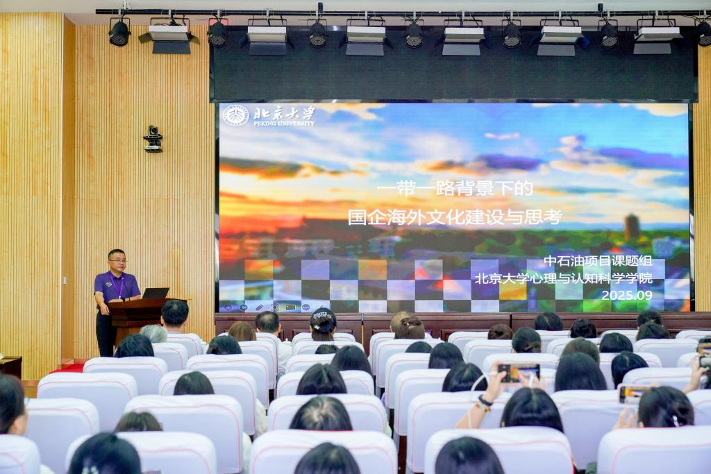 北京大学心理与认知科学学院副院长姚翔研究员作题为“一带一路背景下的国企海外文化建设与思考”的报告。他以北京大学与中石油集团合作项目为例,详细阐述了国有企业海外文化建设与心理学应用的研究,从石油精神的内涵挖掘到跨文化心理干预,研究为“一带一路”倡议下的国企海外文化建设提供“心理学方案”,是用心理学方法破解跨文化管理难题的生动实践。