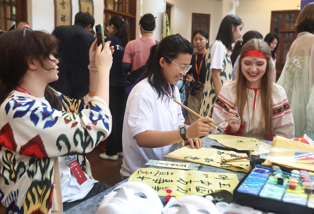 活动现场,上合组织多国的歌舞串烧富有异域风情,武术表演者动作刚劲有力、展现出中国武术的独特魅力,民族乐器演奏余韵悠长,一个个节目接续登场,将现场气氛推向一个又一个高潮。文化市集特设“和美中国”“河海津韵”“上合风采”三大展区,学生们体验京剧艺术、观赏面塑作品、打卡上合组织国家文化元素展示区,共赏文明交流互鉴之美。“就像万花筒,多种文明通过交融互鉴,更加焕发光彩。”乌兹别克斯坦学生爱华的话道出了在场者的心声。