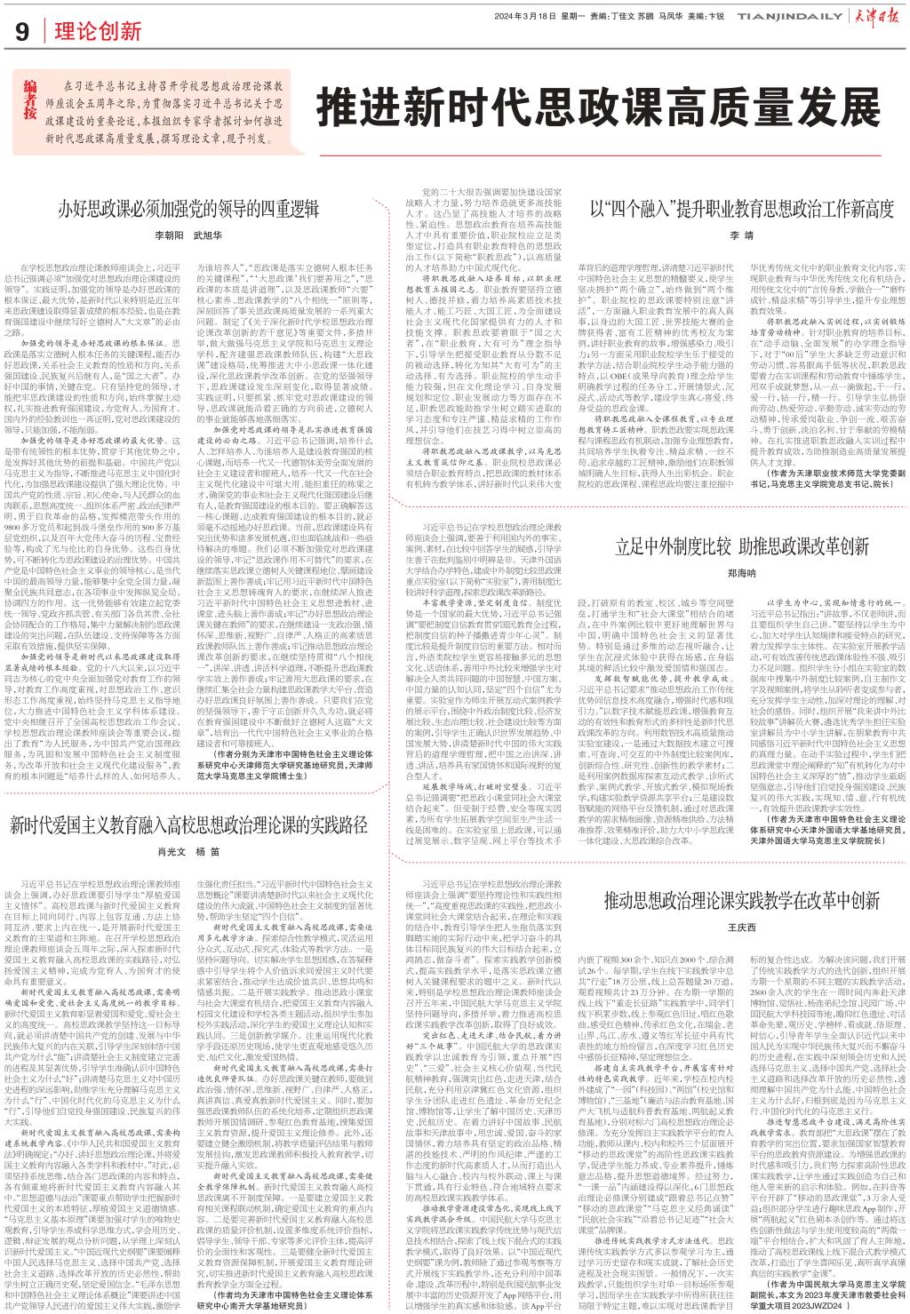 天津日报 | 办好思政课必须加强党的领导的四重逻辑