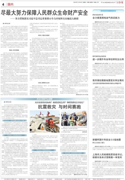 天津日报 | 我市高校摸查地震受灾学生情况 为有需要者提供临时困难补助及心理辅导等
