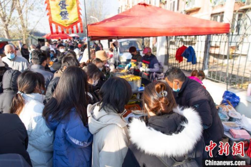 据张璇介绍,位于天津市西青区的“姚村大集”,只有农历“逢一逢六”举办,今天适逢周日,她们宿舍就“集体出动”了。“在家乡,父母经常带我去赶大集,现在很少有这种机会。”张璇告诉记者,“姚村大集”各类新出炉的小吃热气腾腾,驱散了冬日的寒风。