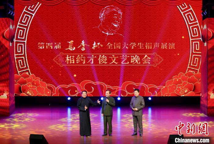 10月6日晚,第四届“马季杯”全国大学生相声展演“相约才俊”文艺晚会在天津举行。姜昆、戴志诚、郑健演出马季先生代表作《一仆二主》。刘俊苍 摄
