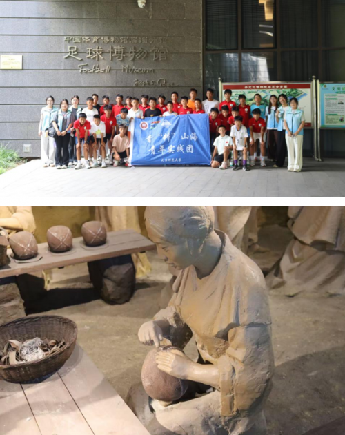 足球博物馆中的展览,宛若一场跨越两千年的足球之旅,令人心潮澎湃。实践团成员与济南青少年足球队一同参观;当看到古代蹴鞠比赛复原场景时,仿佛听见了当年临淄城内的欢呼呐喊。"原来足球的根在这里",这不仅是惊叹,更是一种文化认同的觉醒。那些跃动的蹴鞠,承载的不仅是体育精神,更是一个古老民族生生不息的文明密码。成员们纷纷感叹:足球的历史真悠久!”