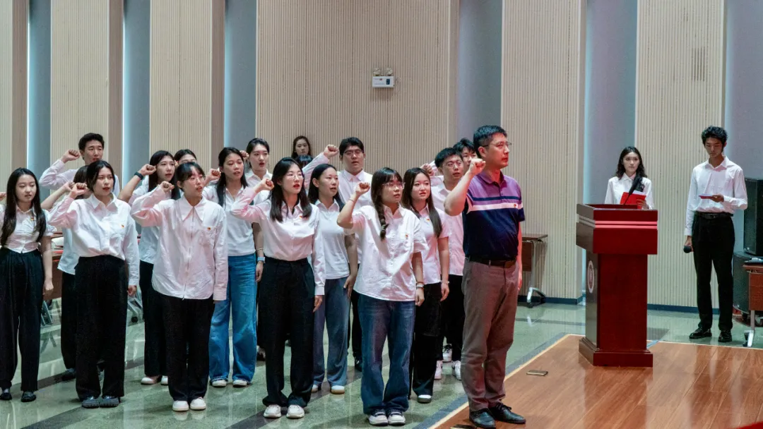 宣誓仪式在庄严的《义勇军进行曲》中拉开帷幕。孟小丽宣读2025年新发展党员名单和新发展团员名单。
