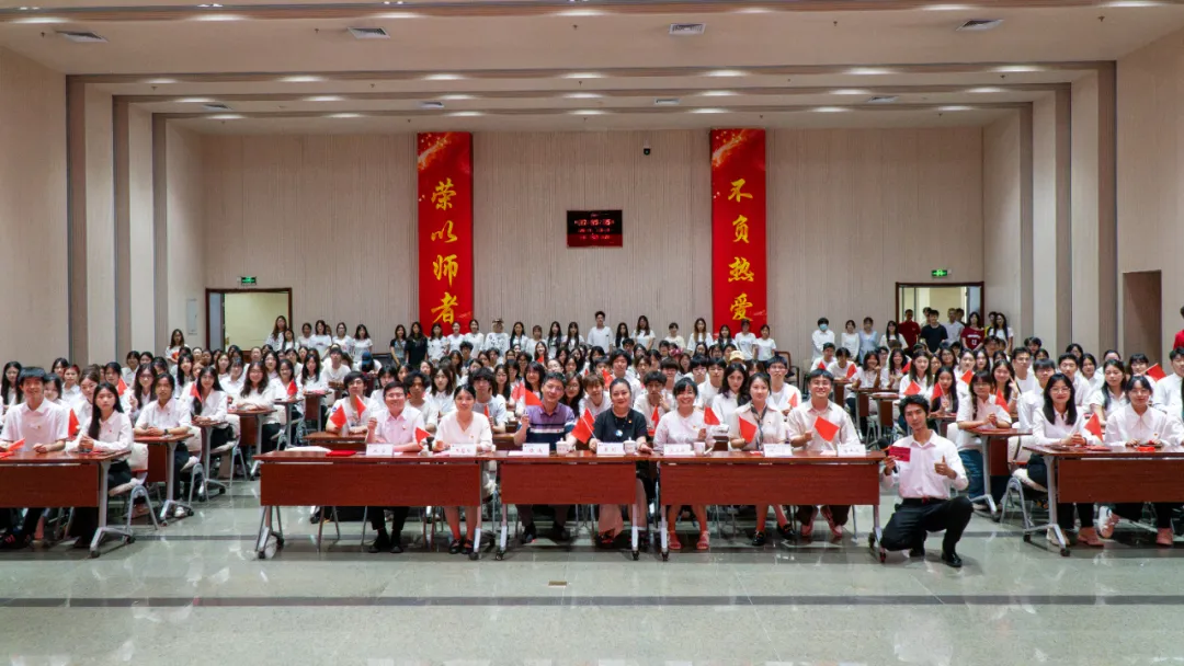 本站讯(通讯员 史冬梅)为庆祝中国共产党成立104周年,引导青年学生传承红色基因,强化使命担当,增强党员、团员的责任意识,充分发挥模范带头作用,7月1日,美术与设计学院庆祝中国共产党成立104周年暨新党员入党、新团员入团宣誓仪式在多功能厅举行。学院党委副书记、院长要彬,党委副书记、纪委书记魏尚,团委书记孟小丽,全体教师团干部,2025年新发展党员、新发展团员及入党积极分子等近200人参加仪式。活动由2023级本科生岳宸羽、翁昕颖主持。