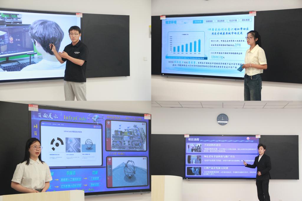 决赛现场气氛热烈,各项目团队围绕个人成长、项目创新、产业价值、团队协作、发展前景等关键要素,聚焦人工智能+、低空经济、教育科技、新能源材料、传统文化、食品安全等国家战略与民生热点领域,从项目的研发背景、产品服务、核心技术、市场分析和营销策略等维度展开精彩阐述,不仅展现了团队扎实的专业知识、敏锐的市场洞察力和卓越的实践能力,更凝聚着同学们对社会热点、科技前沿和产业发展的深入思考。评委们分别从技术创新、商业模式、团队架构、落地转化等角度进行多维度、高标准的点评与指导,为项目完善提供了宝贵建议。