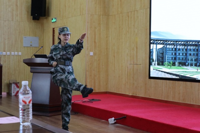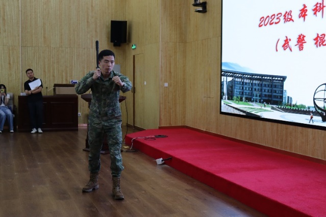 学部退役大学生士兵、2024级硕士研究生杜艺丛和2023级硕士研究生姜颖结合自身参军入伍经历,生动讲述了在军营中拼搏淬炼的故事。学部退役大学生士兵、2023级本科生王继翱、2023级硕士研究生杜佩君分别进行了武警警棍术和军体拳展示。