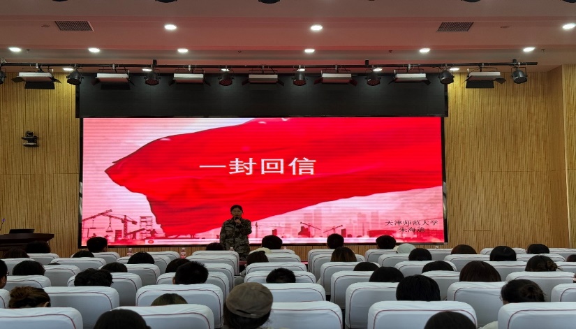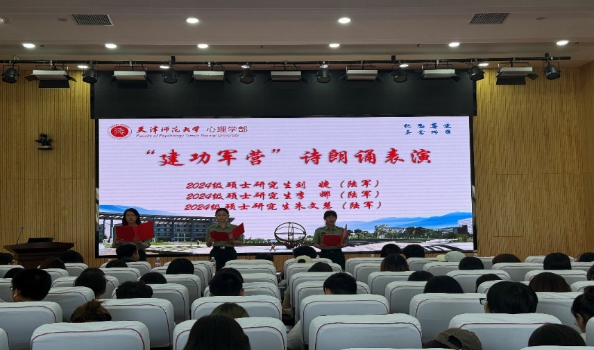 学部退役大学生士兵、2024级硕士研究生刘婕、李娜和朱文慧带来《热血军魂、报国壮志》诗朗诵表演,展现了在军营中绽放别样青春的豪迈。学部退役大学生士兵、我校2025年度“爱我国防”演讲比赛一等奖获得者、2023级硕士研究生朱海迪展示了获奖作品《一封回信》,表达了新时代大学生传承红色基因,担当强军重任,以强军路上后继有人告慰先烈的铮铮誓言。