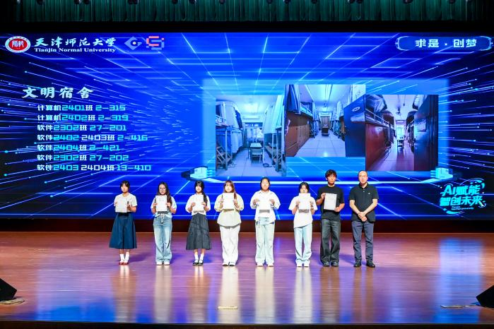 活动围绕“求是·创梦、笃行·逐梦、担当·拓梦”三个篇章展开,对在IT文化节系列竞赛中获奖的学生代表和2024—2025学年度在国家级、市级学科竞赛中获奖的学生代表予以表彰,为“芯青年”榜样宣讲团的优秀学生代表颁发聘书。通过精彩纷呈的分享、宣讲、访谈,展现了IT学子在科技创新、学业精进、社会责任等方面的卓越风采。
