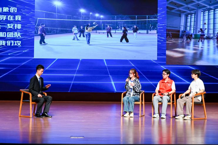 在优秀学生团队访谈中,学院女子排球队、“石榴花开”民族团结实践团队、“电脑义诊”志愿服务团队的代表分享了他们在赛场上、在学习生活中践行“女排精神”,在社会实践中了解国情社情民情、铸牢中华民族共同体意识,在薪火相传中坚持19年开展“电脑义诊”志愿服务,用技术温暖人心,用奉献书写担当的成长感悟。