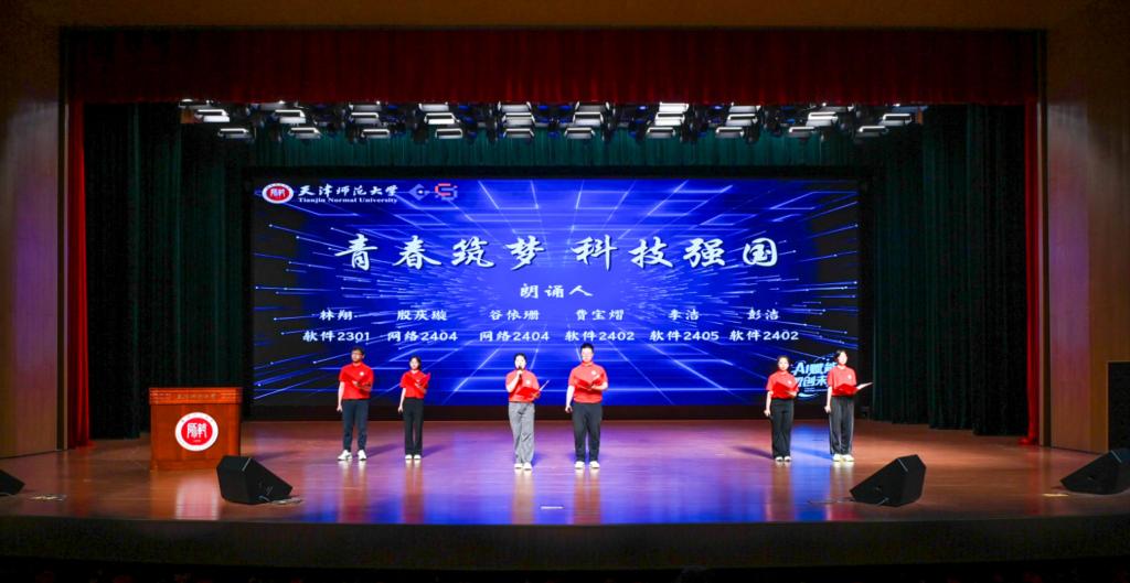 AI赋能激荡创新浪潮,强国有我定当踔厉奋发。学生代表饱含深情、铿锵有力的原创诗朗诵《青春筑梦 科技强国》,展现了IT青年胸怀家国、砥砺奋进、勇于创新、勇挑重担、科技报国的信心和信念,激励引领广大同学自觉肩负起新时代新征程赋予的历史重任,让青春为中国式现代化挺膺担当。