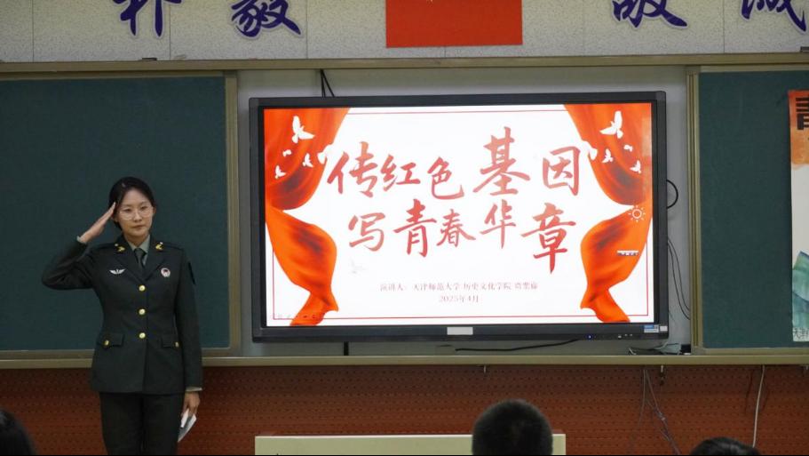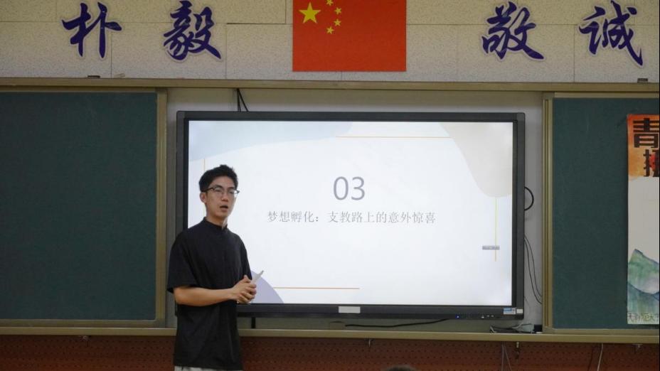宣讲通过“信仰的光芒”“榜样的力量”“分享与协作”和“青春的誓言”四个篇章精彩呈现。学院团委特别邀请两位优秀研究生分享青春奋斗故事。一位赴西部支教,用知识播撒希望的种子;一位投身军营,用热血书写报国志向。作为2023年赴甘肃定西西关小学支教的志愿者,研究生安海堃讲述了如何从世界史专业学生到体育老师和“粉超”解说员的身份转换,向下扎根,不断努力,用实力和才干赢得信任和肯定,被评为西部计划优秀志愿者、安定区优秀教练员。研究生贾紫藤作为参军入伍的大学生代表,在长津湖战役中全歼美军王牌军队的英雄部队“北极熊团”的原型部队中服役,她向同学们介绍自己在军旅生涯中是如何突破重重困难,磨炼意志,将自己淬炼成一名真正军人的心路历程。在退役回到校园后,她仍满腔热血投身大学生国防教育志愿工作中,矢志不渝。两位优秀研究生的青春奋斗故事充分展现了新时代青年的责任感和使命感,事迹分享让学生们感到亲切和振奋,赢得热烈反响。最后,全体同学在宣讲人的带领下,用铿锵有力的青春誓言回应时代的召唤,在承诺书上郑重书写出争做时代新人的坚定决心。