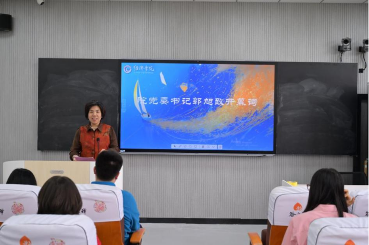 本站讯(通讯员 白帆)为了激发学生专业学习热情,鼓励同学们关注社会经济现象,探究经济学科前沿热点问题,营造学思践悟、知行合一的学习氛围,激发经世济民的时代责任感与历史使命感,经济学院立足学科专业特点,于5月8日举办“勇闯经济新赛道,智启青春新征程”第二届经济文化节开幕式,着力锻造五育融合新范式,聚力培育新时代经济人才。学院党委书记郭旭,党委副书记、纪委书记王丽娟出席活动,专业课教师代表、全体辅导员及学生代表等百余人参加活动。