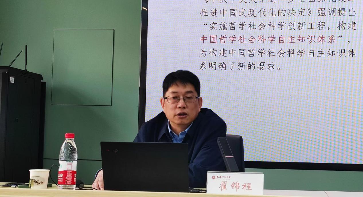 本站讯(通讯员朱立明为深入贯彻落实党的二十届三中全会关于“构建中国哲学社会科学自主知识体系”的战略部署,推动哲学社会科学研究扎根中国实践、彰显文化主体性,社会科学处于4月3日举办首期从游学术讲堂。南开大学翟锦程教授应邀作“中国自主知识体系构建的文化基础”专题学术报告,吸引全校百余名师生共同参与。
