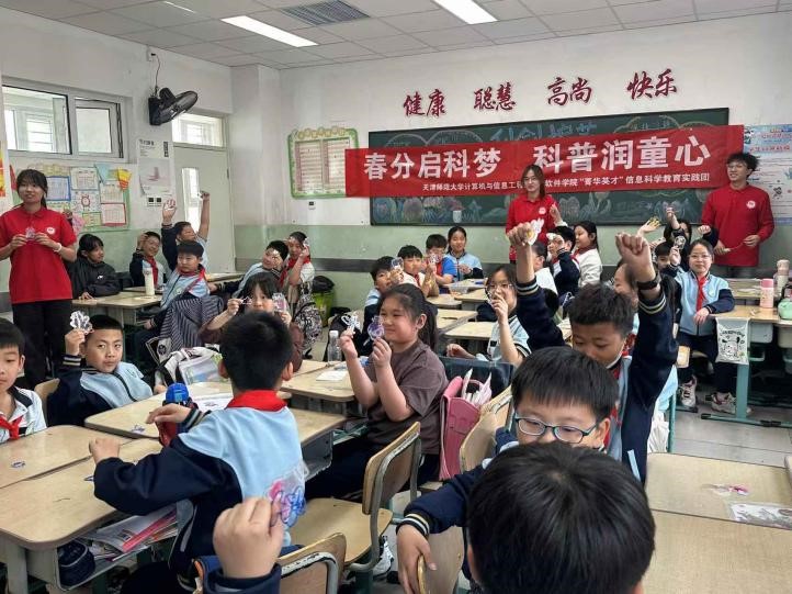 本站讯(通讯员 韩笑旭)3月27日下午,计算机与信息工程学院、软件学院“菁华英才”信息科学教育实践团师生来到西青区王稳庄镇中心小学,开展了一场以“春分启科梦 科普润童心”为主题的科普思政实践活动。