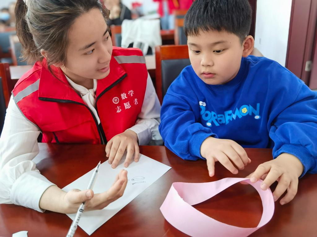 “青马”志愿者们为社区居民和外来务工子女带来了非常丰富有趣的活动。通过“趣味算数”和“数学小讲堂”,志愿者们引导孩子们探索数学的奥秘,激发他们对数学的兴趣和好奇心。志愿者们通过引入工业中的传送带、磁带原理以及莫比乌斯带的概念,让孩子们从实际生活中找到数学的影子,通过亲身体验和互动感受数学的魅力。此外,孩子们通过参与“猜数谜”“扑克速算”“填数独”等数学闯关游戏,在游戏中学习,锻炼了逻辑思维,提高了解决问题的能力,让数学变得更加有趣和富有挑战性。