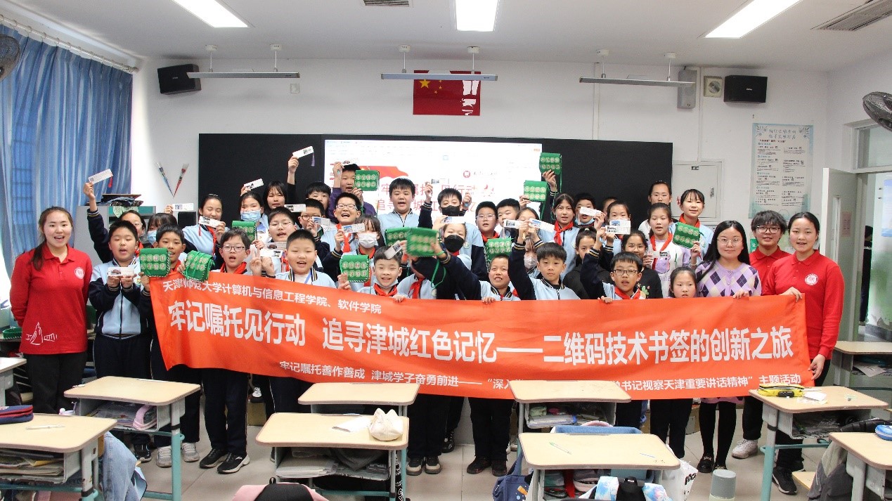 在“牢记嘱托见行动 追寻津城红色记忆——二维码技术书签的创新之旅”科普思政实践课程中,实践团成员带领学生们以天津各大红色纪念馆为主题,通过手绘和拼贴的方式,制作带有红色革命纪念馆介绍二维码的书签。实践团成员扫描二维码,将各大红色革命纪念馆中革命先辈的伟大事迹呈现给学生们,在使学生们领略奇妙的二维码技术的同时传承红色基因,赓续精神血脉。
