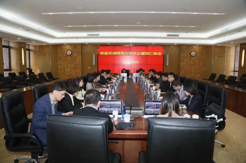 3月8日下午,学校办公室党支部继续深入走访,来到天津大学北洋园校区,与天津大学党办校办开展座谈调研。天津大学党委办公室主任、校长办公室主任袁惠龙出席座谈调研活动。袁惠龙对学校办公室一行来访表示欢迎,他详细介绍了天津大学的历史沿革、事业发展情况以及天津大学党办校办的基本情况,并结合办公室坚持发挥参谋助手、综合协调、桥梁纽带和督查督办作用,持续提高“三服务”工作水平等方面分享了工作经验。双方围绕“学校OA系统设计及运行管理”“完善落实两会议事规则”“加强办公室制度建设及信息化管理”等内容进行了深入交流,党员同志们时而认真聆听、时而交流讨论,活动现场气氛热烈。调研期间,学校办公室一行参观了天津大学智能制造中心、国家大型地震工程模拟研究设施和天津大学北洋园校区综合服务大厅。