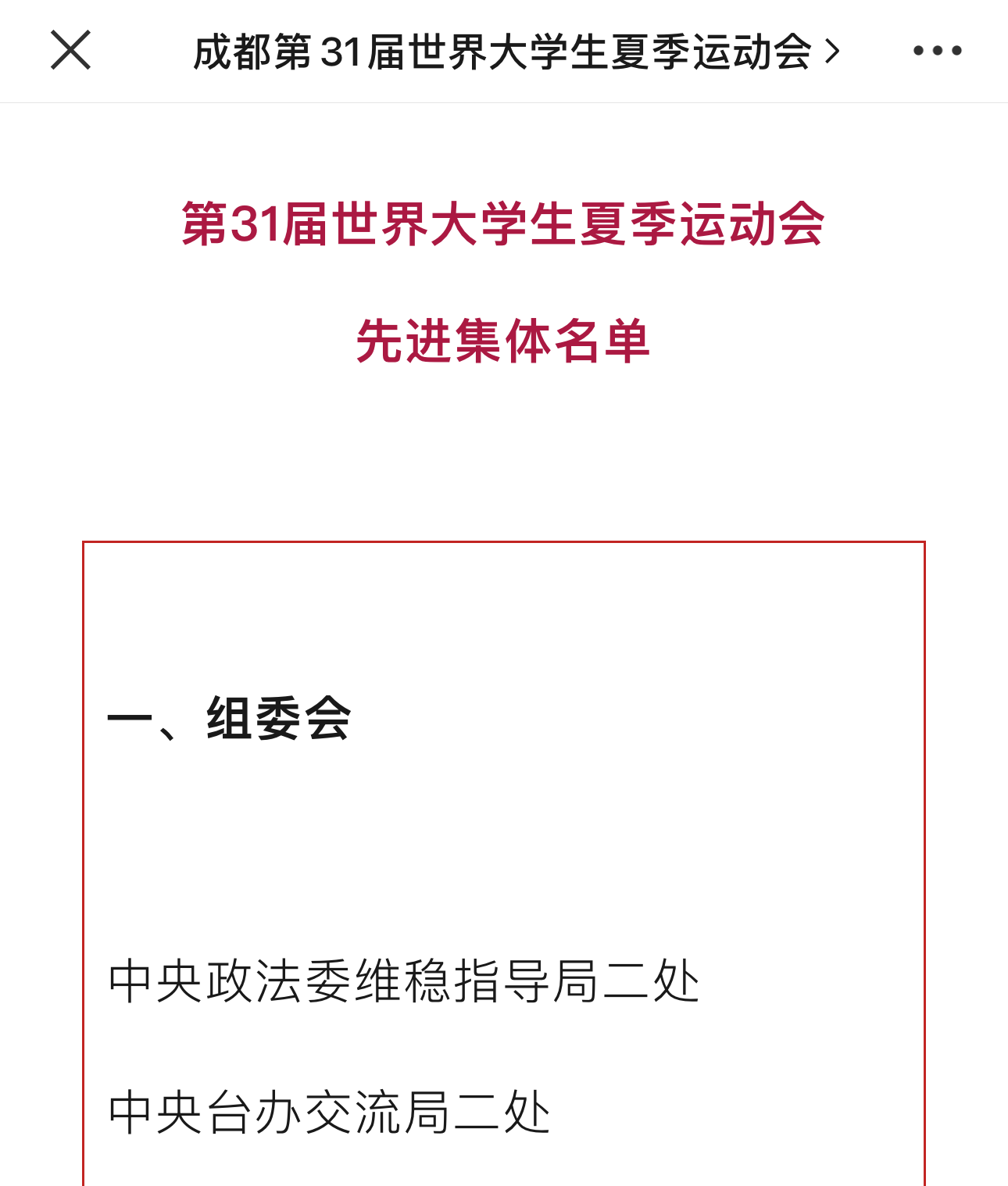 体育科学学院消息(通讯员 吕天宇)2月5日,成都第31届世界大学生夏季运动会官方微信公众号发布消息,我校体育科学学院被授予“第31届世界大学生夏季运动会先进集体”称号。这一荣誉的获得不仅是对师生辛勤训练和努力付出的充分肯定,也展现了我校在竞技体育方面的卓越实力和优秀表现。
