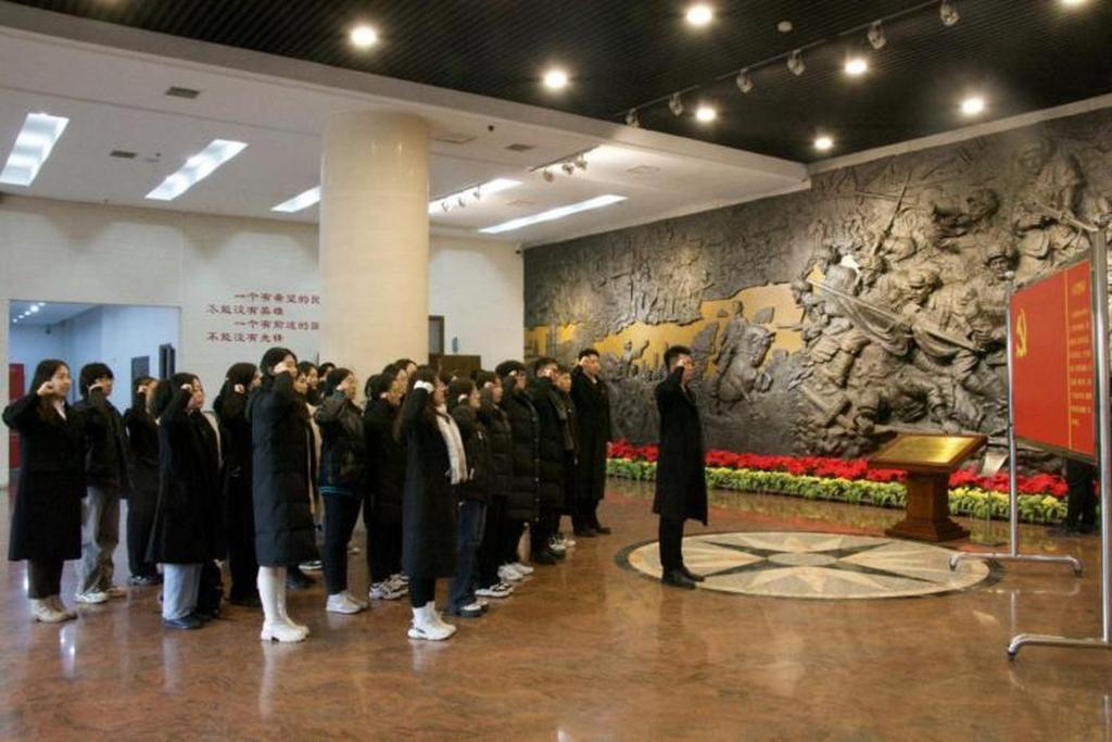 学院师生代表跟随讲解员参观了烈士陵园建国后纪念馆和革命烈士纪念馆。珍贵的图片和实物史料、烈士的感人故事,让大家重温先辈浴血奋斗的伟大精神。新闻传播学院2023年新一批入党和入团学生代表在纪念馆浮雕墙前进行宣誓。