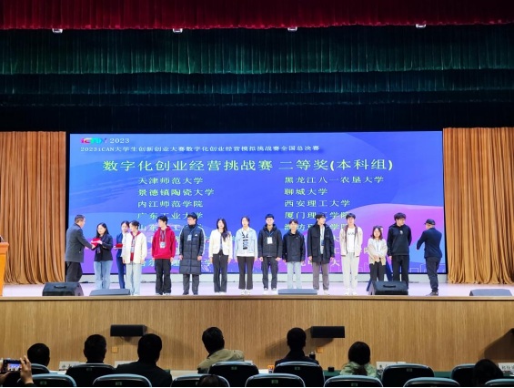 管理学院消息(通讯员 陈敬)近日,由中国信息学会主办的2023iCAN大学生创新创业大赛数字化创业经营模拟挑战赛全国总决赛在江苏举行,由我校管理学院2021级信息管理与信息系统专业魏颖、2021级工商管理专业杨薪航、2023级市场营销专业陈宇飞三位同学组成的参赛队伍获得全国总决赛二等奖的优秀成绩。
