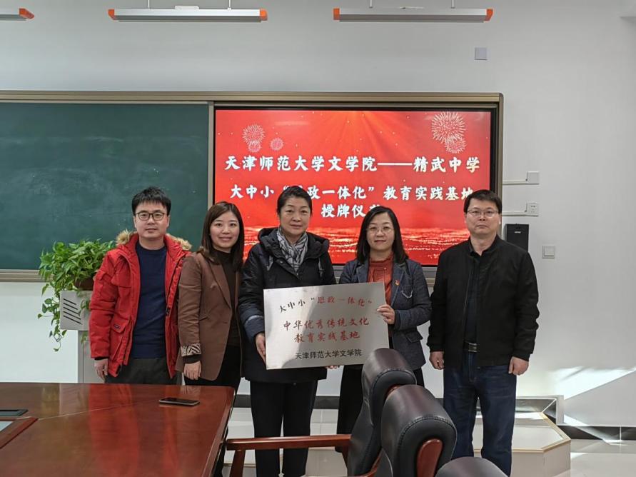 决赛当日,学院党委书记李静,党委副书记、纪委书记张杨到两所学校,分别与精武中学校长王振丹、副校长曲兆平以及师大三附小校长张同俊就大中小“思政一体化”建设、中华优秀传统文化教育、人才培养改革等内容进行深入交流,并与两所学校共建大中小“思政一体化”中华优秀传统文化教育实践基地。