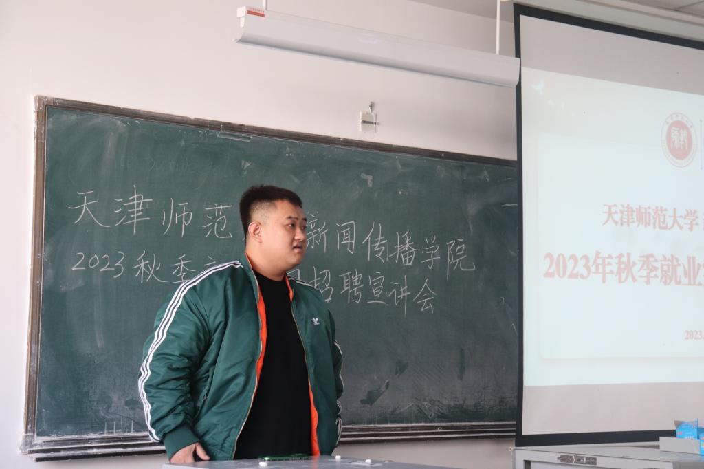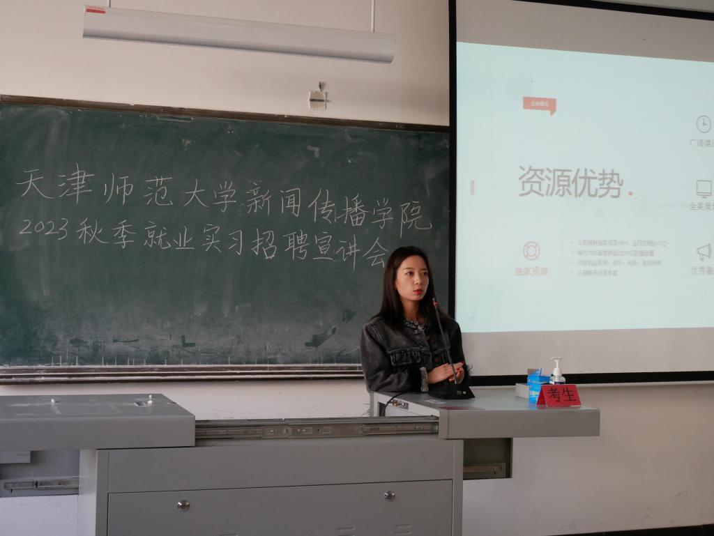 新闻传播学院消息(通讯员 高宇 刘谢宁)为深入贯彻落实党中央、国务院关于高校学生就业工作的决策部署,近日,新闻传播学院在劝学楼A301召开2023年秋季就业实习招聘宣讲会。本次宣讲会由声未来语言艺术培训学校校长褚麒、天津老美华鞋业服饰有限责任公司培训主管金鑫鑫、天津新偶文化传媒有限公司运营主管王晓莲担任主讲嘉宾。