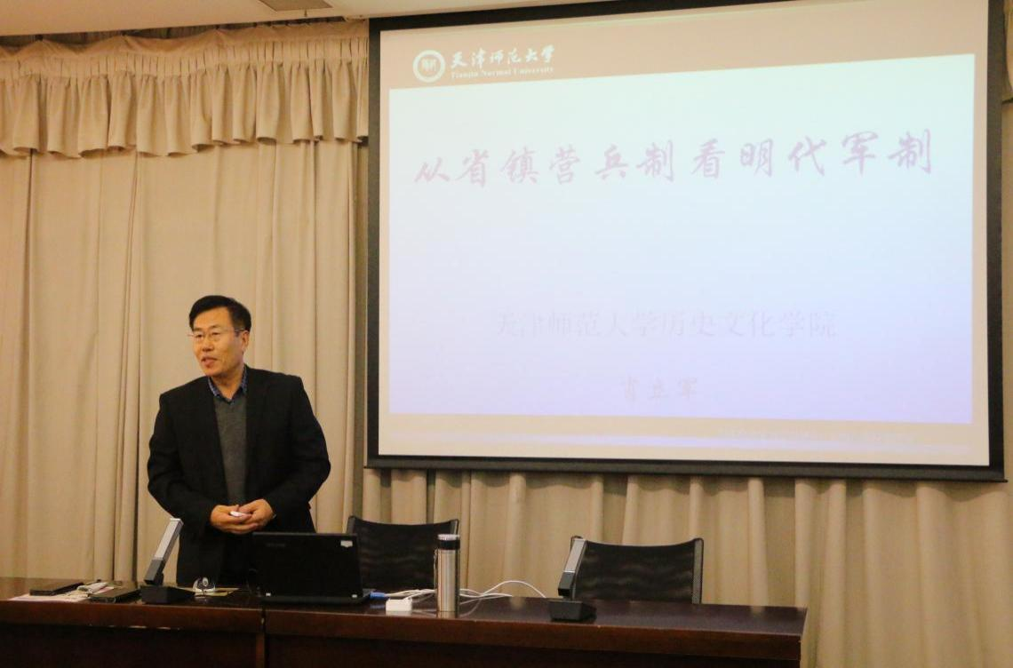 开幕式结束后,历史文化学院中国史系主任、中国史一级学科带头人、博士生导师肖立军为两院研究生作题为《从省镇营兵制看明代军制》的学术节首场讲座。肖立军在明代军事制度的研究中,开创性提出省镇营兵制的概念。他详细介绍了省镇营兵制度的内容,阐释了省镇营兵制与卫所制、京营制的关系以及明代军制的演变过程。讲座最后,肖立军耐心解答了同学们的疑问,并交流了对明代军事史的新看法、新观点,同学们受益良多。