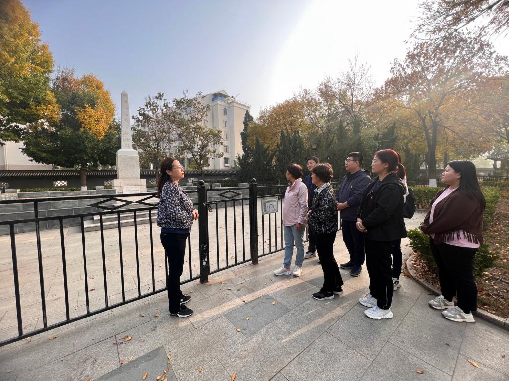 坐落于叠翠山上的革命烈士纪念碑,是为纪念解放天津、英勇牺牲的铁路系统的革命烈士而修建的。党员们瞻仰了革命烈士纪念碑,共同追思革命先烈的丰功伟绩,向革命烈士表达深切缅怀之意。通过重温那段艰苦卓越的岁月,党员们切实感受到了先烈们的革命意志和抗战精神,深刻认识到了和平幸福的生活来之不易。