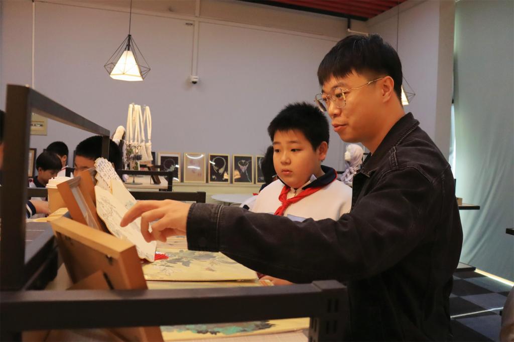 在此次研学参观活动的最后一站图书馆,孩子们在老师们的耐心引领下了解了高校图书馆的运作方式和借阅流程,亲手体验了木板水印制作技法,更是身临其境地真切感受到大学生孜孜不倦、全情投入的读书场景。