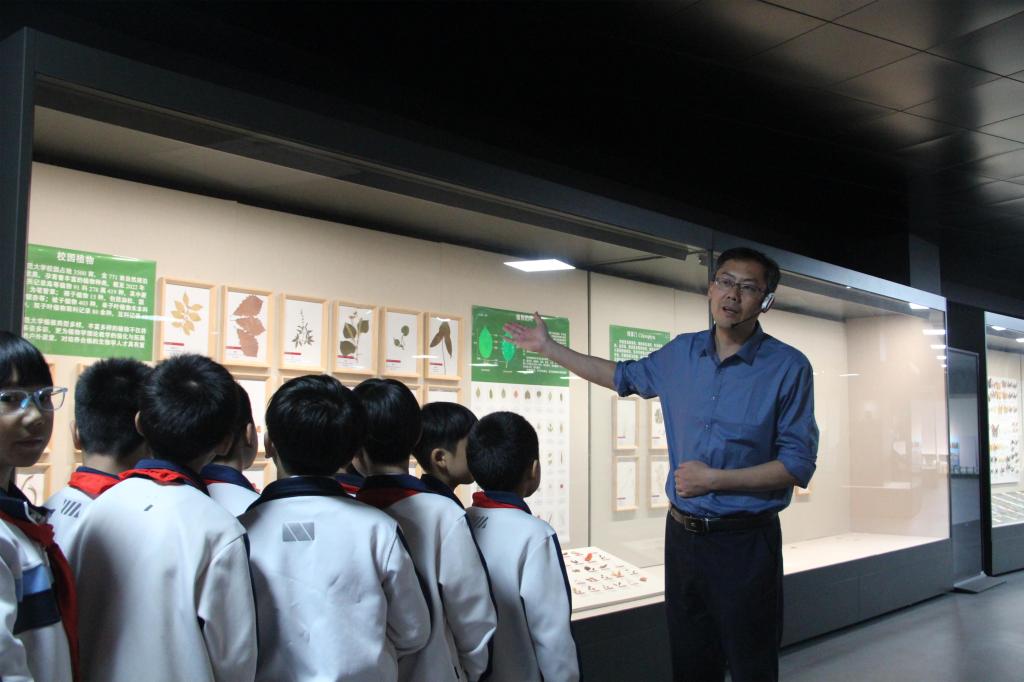 在生态记忆馆,同学们在生科院老师讲解带领下参观各类动植物标本,亲手参与专业的标本制作,并且在校园中近距离与师大萌宠白鸽、黑天鹅、水禽等开心互动,小学生在活动中对自然的奥妙产生了浓厚兴趣,对师大的和谐生态充满了由衷赞叹。