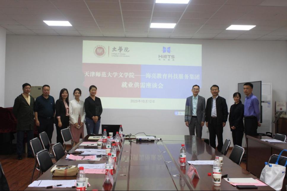 文学院党委副书记、院长赵利民代表学院对海亮教育科技服务集团一行的到来表示欢迎,并感谢集团长期以来对学院的大力支持。他希望校企双方能够在共建教育部供需对接就业育人项目的基础上,持续深入推进合作,共建交流发展平台,针对学生课程、实习、就业等方面问题开展研讨,进一步合作共建“就业育人共同体”。