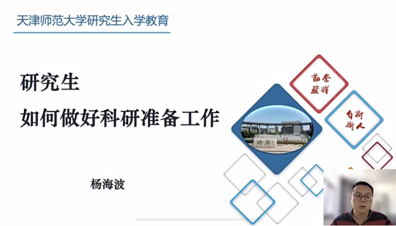 在研究生培养、本科生学业指导专题教育中,心理学部教授、博士生导师、研究生院副院长杨海波以“研究生新生如何做好科研准备工作?”为题,从“角色转变,科研准备,应对挑战,心理调适”四个方面指导研究生新生更好地融入新的学习科研和生活环境,顺利踏上研究生学习生活新征程。同时,教务处录制《大学之路,我们与你同行》本科生学业指导视频,围绕培养方案、课程体系、修读方式等内容进行了详细地解读,帮助新生更好地做好个人学业和发展规划。